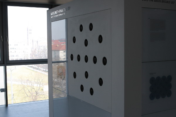The composition by Thomas Ankersmith was developed for the analog Serge modular synthesizer as part of the ZKM project, in 2013. It includes the digital processing of sounds based on otoacoustic emissions, which are then first created in the ear of the listener himself. For »Brain Decompositions« by Christoph Illing, by way of »Independent Component Analysis« a process is used for the spatial separation of sound waves derived from the recording of 30 electrodes on the skull. The elements from which the electrical brain signal is composed are then reproduced through loudspeakers.